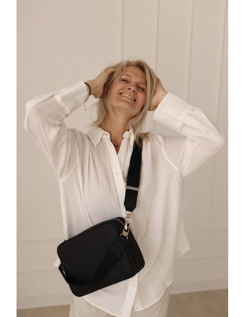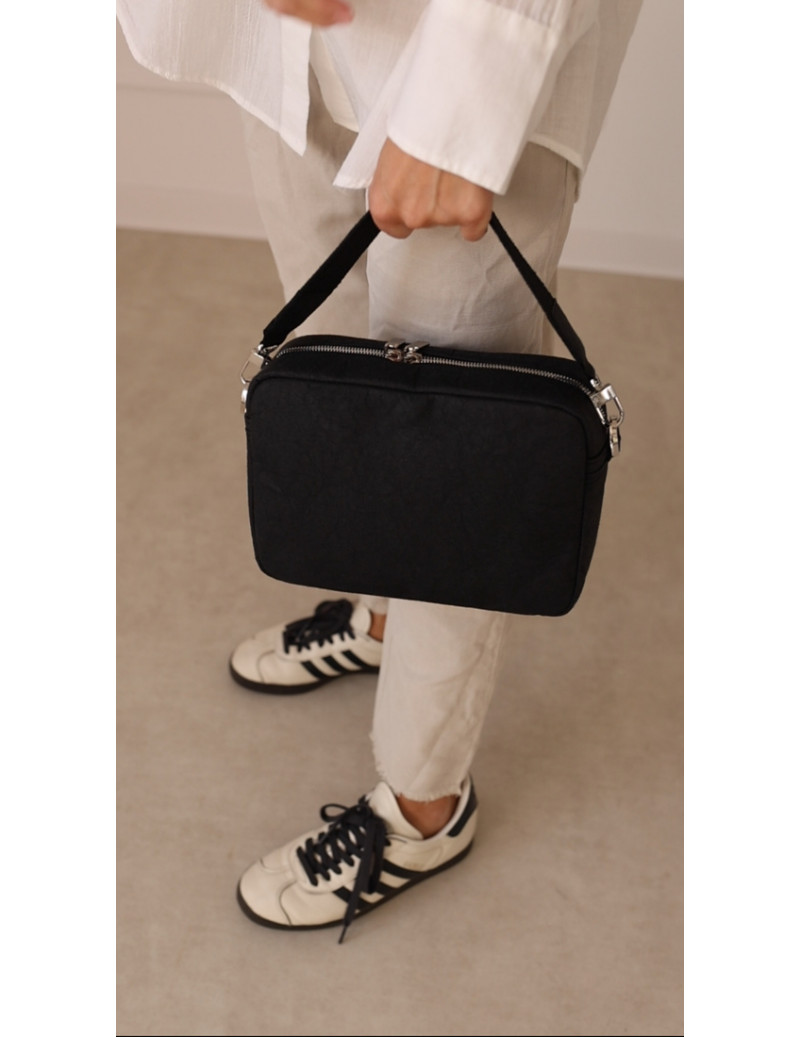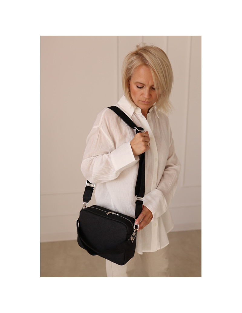 Szyjemy w lokalnej pracowni w Poznaniu, gdzie mistrzyni krawiectwa Magda dba o każdy detal. Dlatego też wysyłka trwa do 10 dni, bo większość produktów jest szyta dopiero po złożeniu zamówienia. Stawiamy na jakość i relacje – między pracownikami, z partnerami oraz z klientami - czyli z Tobą! Tworzymy przede wszystkim dla kobiet, które od torebki oczekują czegoś więcej niż tylko wyglądu i ponad wszystko cenią wygodę. Nasze klientki najbardziej cenią Bagoo za niezwykłą lekkość materiału, genialną organizację wnętrza oraz minimalizm. Korzystamy wyłącznie z innowacyjnej, certyfikowanej skóry roślinnej na bazie celulozy, co daje Ci pewność, że inwestujesz w produkt etyczny, trwały i stworzony, by ułatwiać i umilić Twoja codzienność. Jeżeli to dla Ciebie ważne, wiedz, że Bagoo to produkty cruelty free.