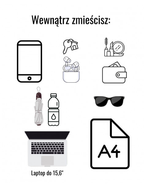 - dużą kieszeń na dokumenty lub tablet (bez problemu pomieści A4)