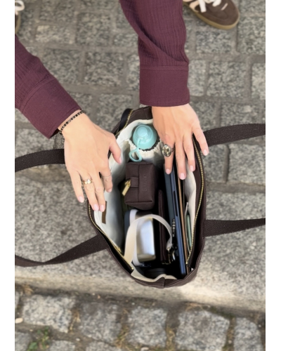 Ta shopperka ze skóry roślinnej została stworzona z myślą o kobietach, które nie chcą rezygnować z wygody. Elly jest lekka jak piórko, ale bardzo pojemna. Zmieścisz w niej średniej wielkości laptopa, notatki, kosmetyczkę, wodę i jeszcze znajdzie się miejsce na spontaniczne zakupy. Jej minimalistyczny design i ponadczasowe kolory sprawiają, że Elly pasuje do każdej stylizacji, od casualowych jeansów po elegancki garnitur. Elly to towarzyszka, która ułatwia życie i dodaje pewności siebie w każdej sytuacji.
