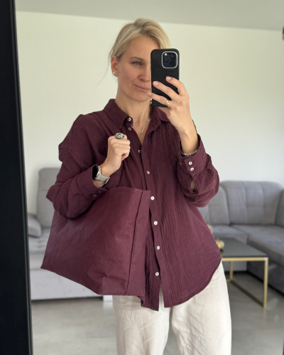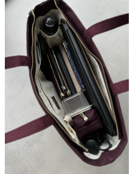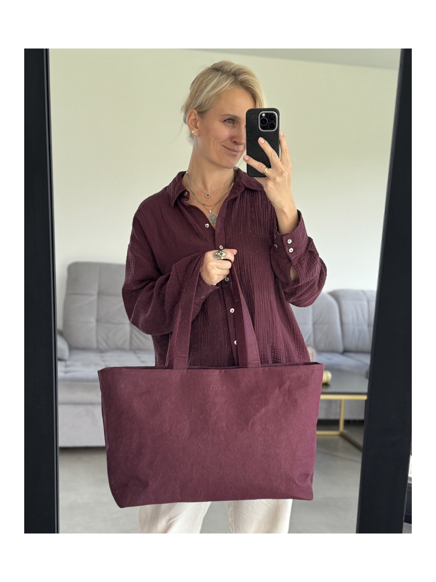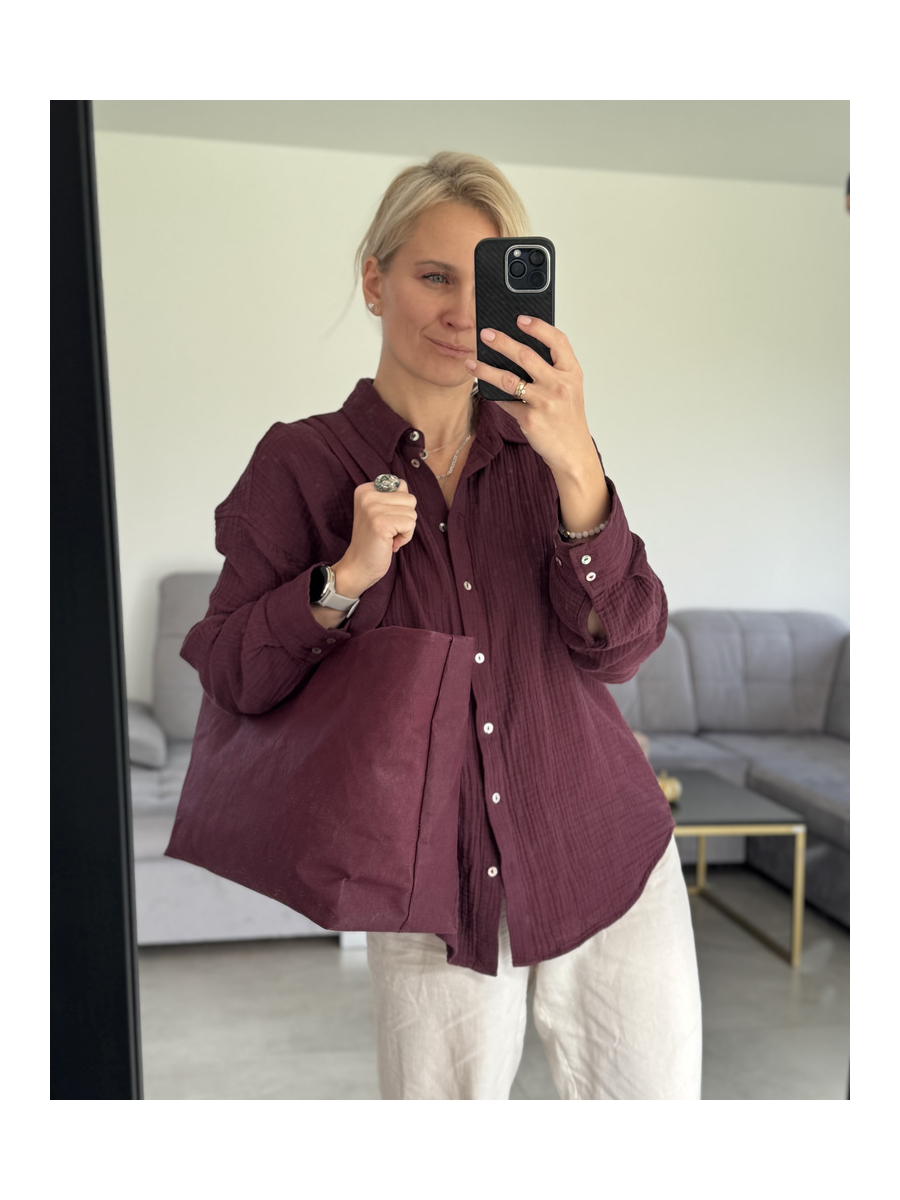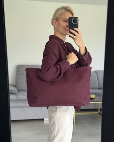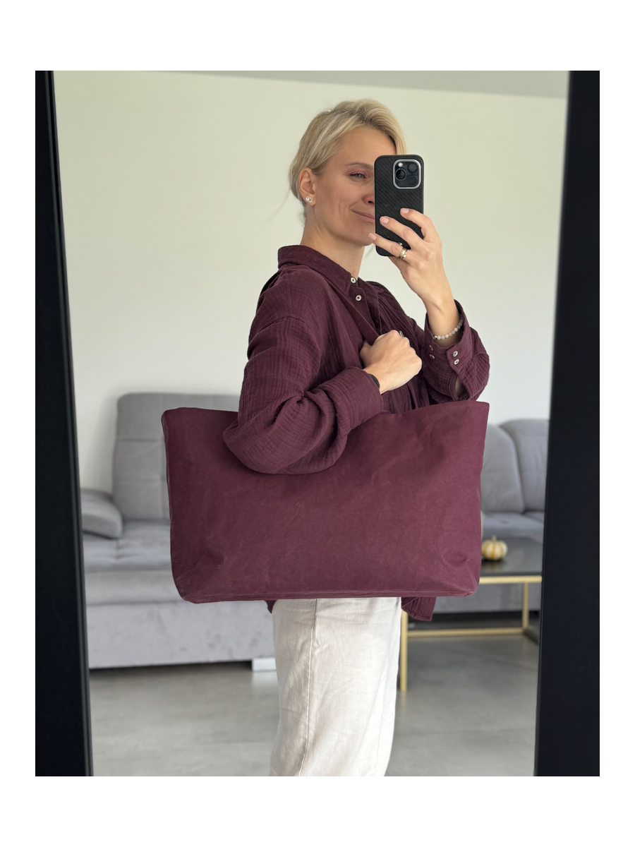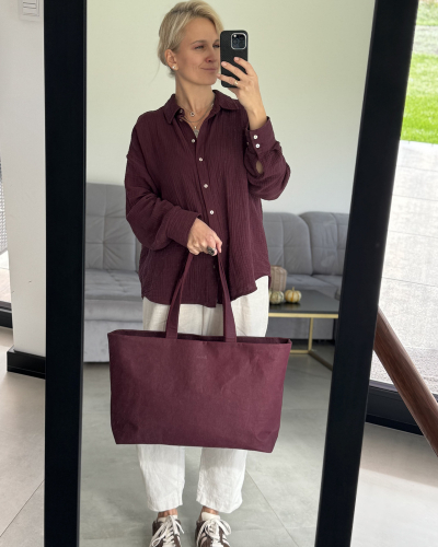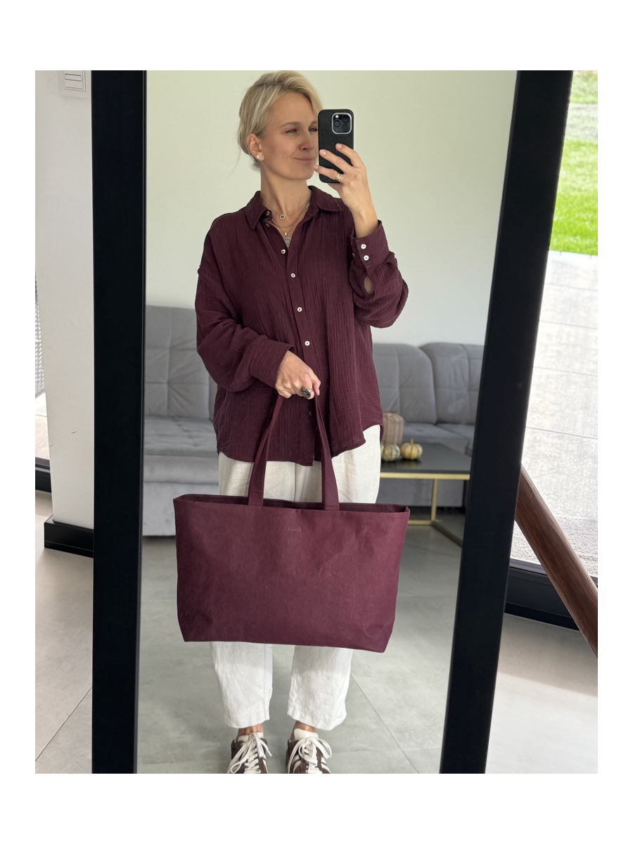 WYPRZEDAŻ: Shopperka HOLLY - burgundowa - złote okucia