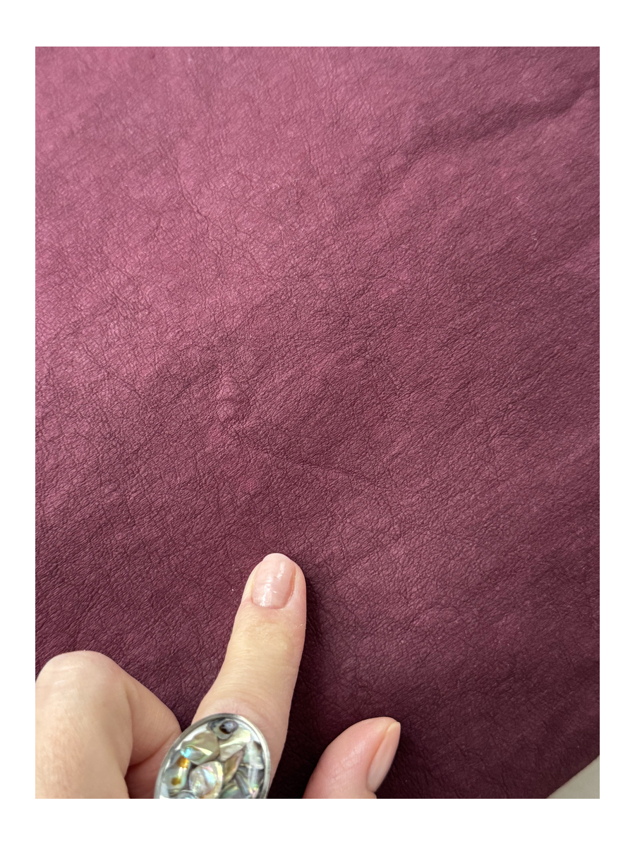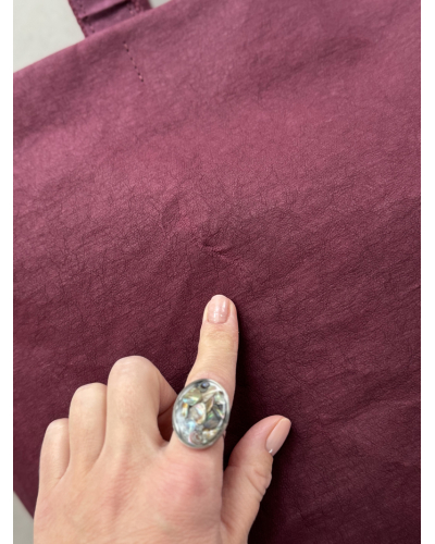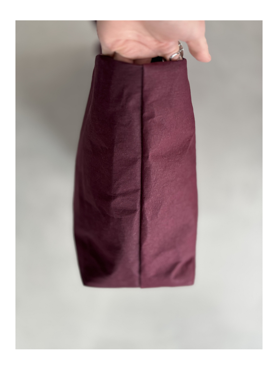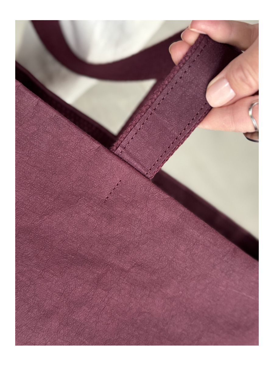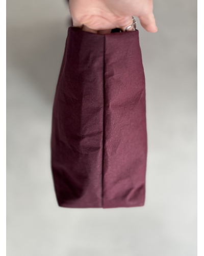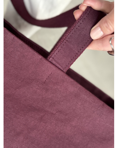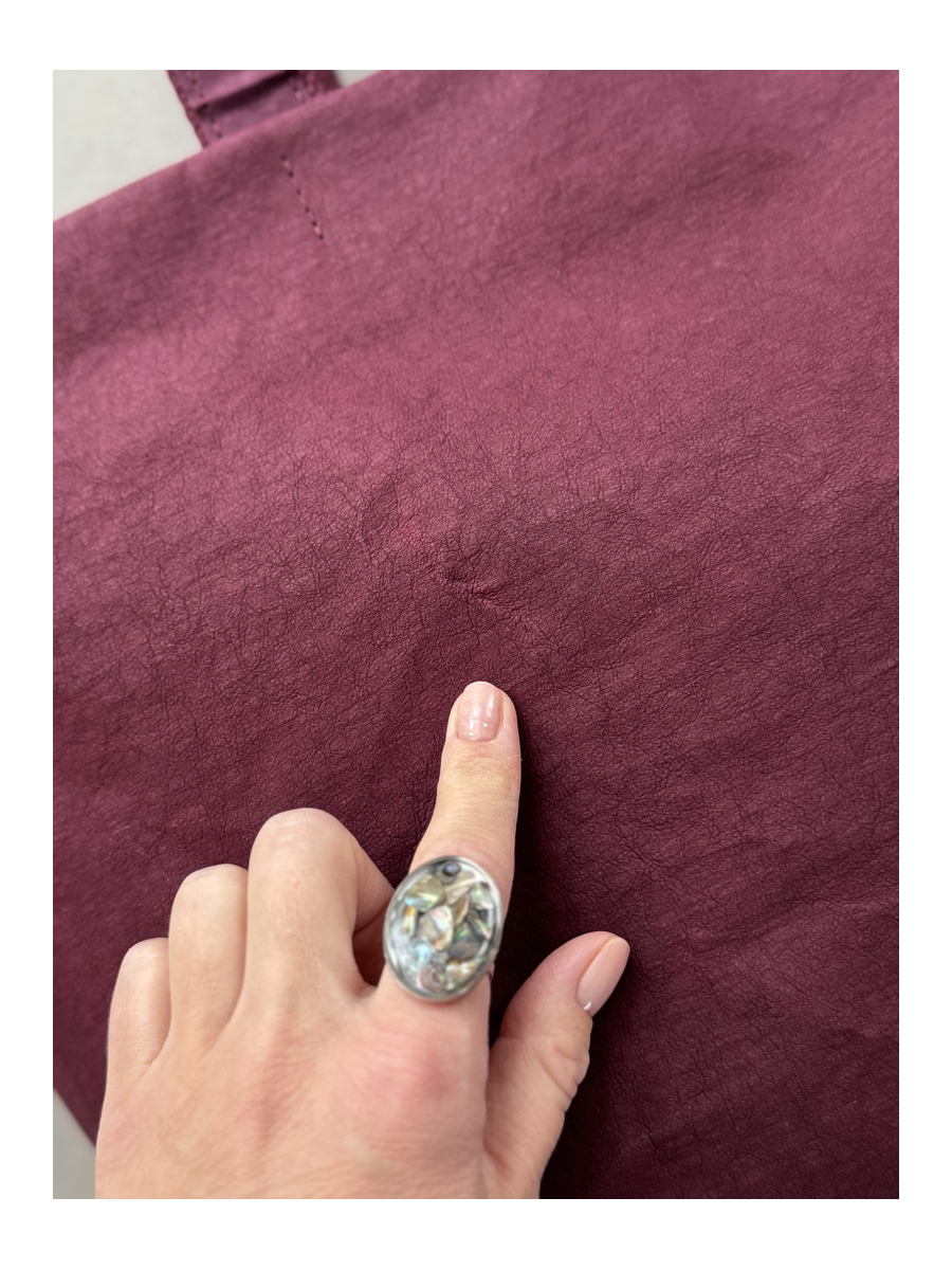 Do czyszczenia torebki nie należy używać środków chemicznych np. rozpuszczalników, benzyny, zmywaczy itp. Załamania i zgięcia są naturalną cechą papieru do szycia. Podczas użytkowania będzie się ona starzała jak skóra i nabierała szlachetności. Każdy arkusz skóry roślinnej na bazie celulozy, ma unikatową fakturę i może mieć niewielkie przebarwienia lub rysy, które wynikają z procesu produkcji i nie są wadą produktu.