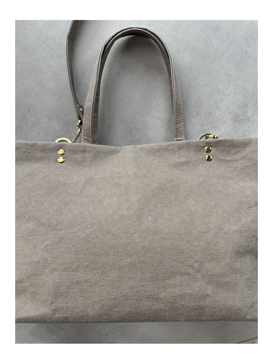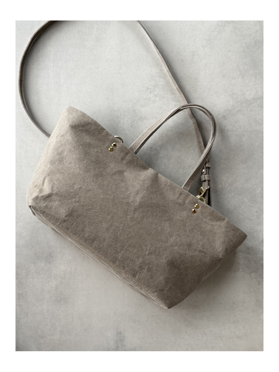 Do czyszczenia torebki nie należy używać środków chemicznych np. rozpuszczalników, benzyny, zmywaczy itp. Załamania i zgięcia są naturalną cechą papieru do szycia. Podczas użytkowania będzie się ona starzała jak skóra i nabierała szlachetności. Każdy arkusz skóry roślinnej na bazie celulozy, ma unikatową fakturę i może mieć niewielkie przebarwienia lub rysy, które wynikają z procesu produkcji i nie są wadą produktu.