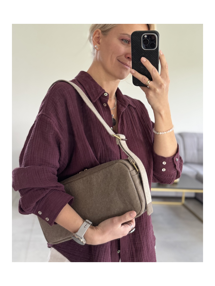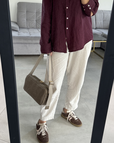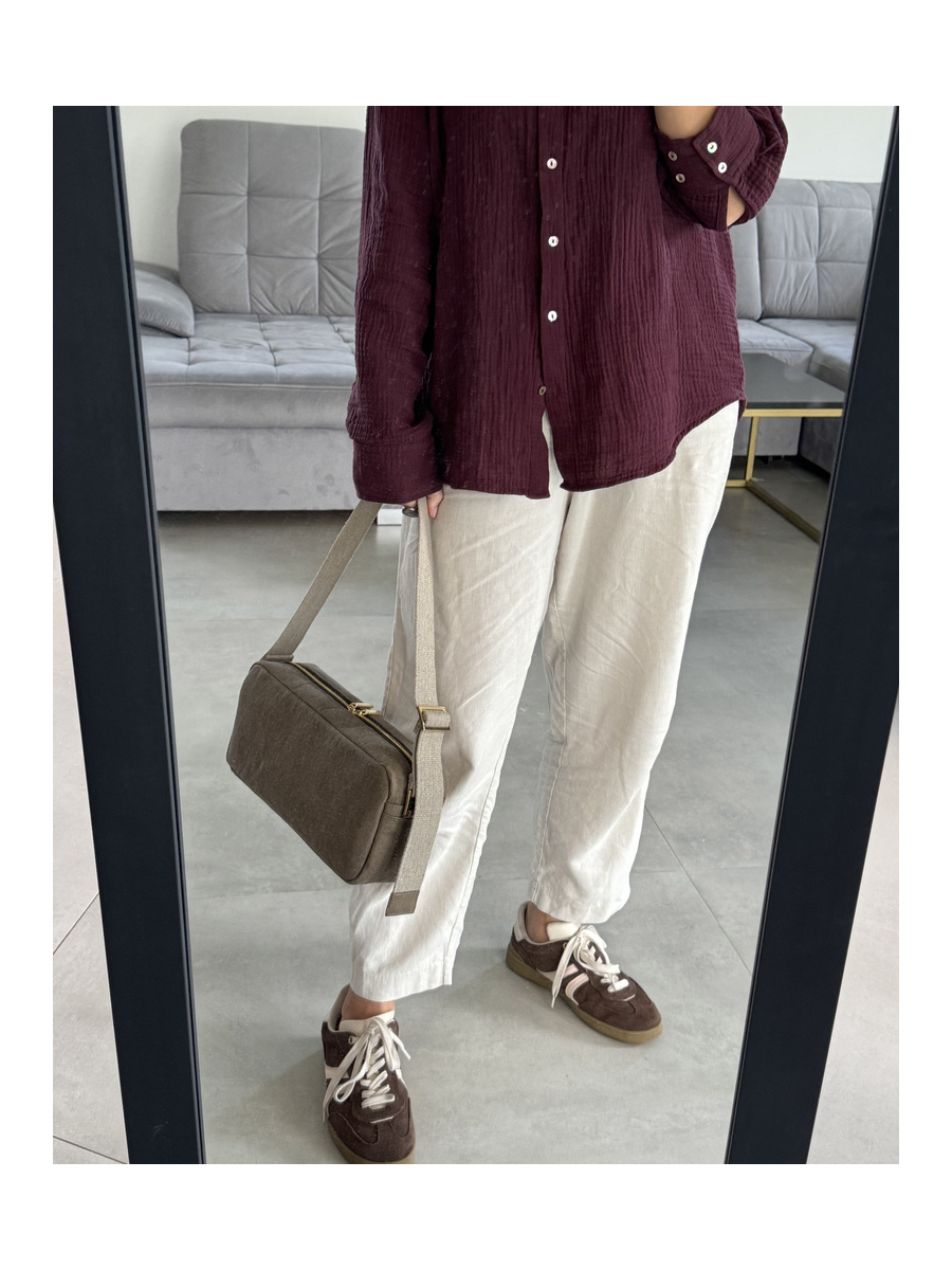 - W przypadku zabrudzenia lnianej podszewki, możesz wyciągnąć ją na zewnątrz torebki (jeżeli model na to pozwala) i delikatnie przeprać, zostawiając do wysuszenia.