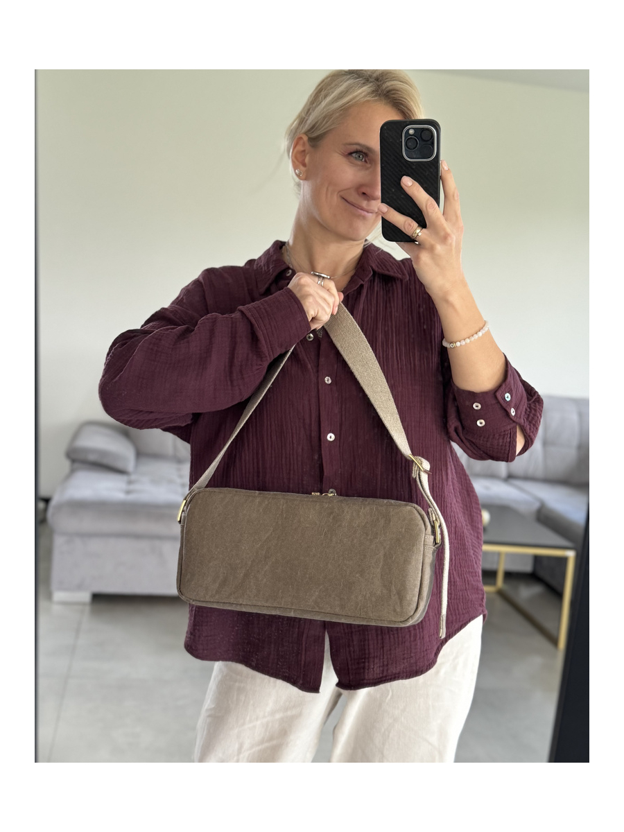 WYPRZEDAŻ: PROTOTYP Torebka bagietka do ręki - TAUPE - złote okucia