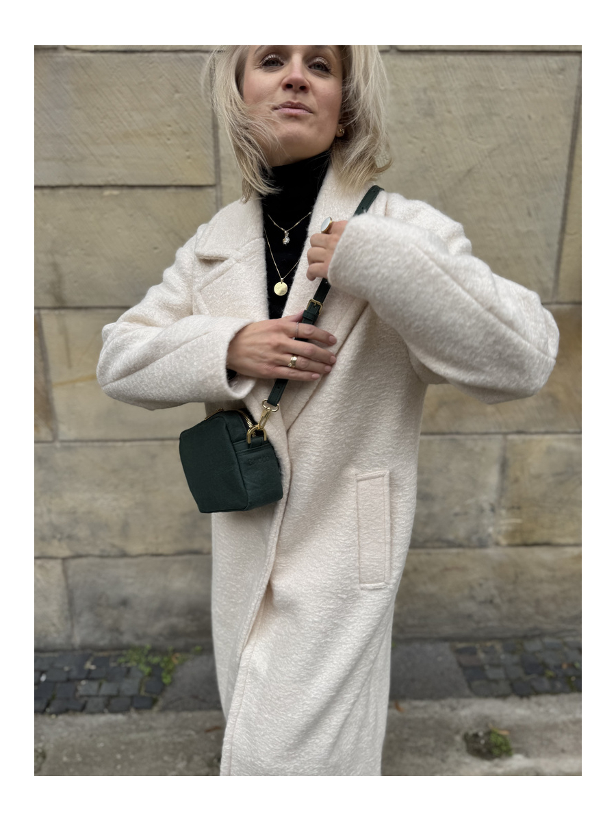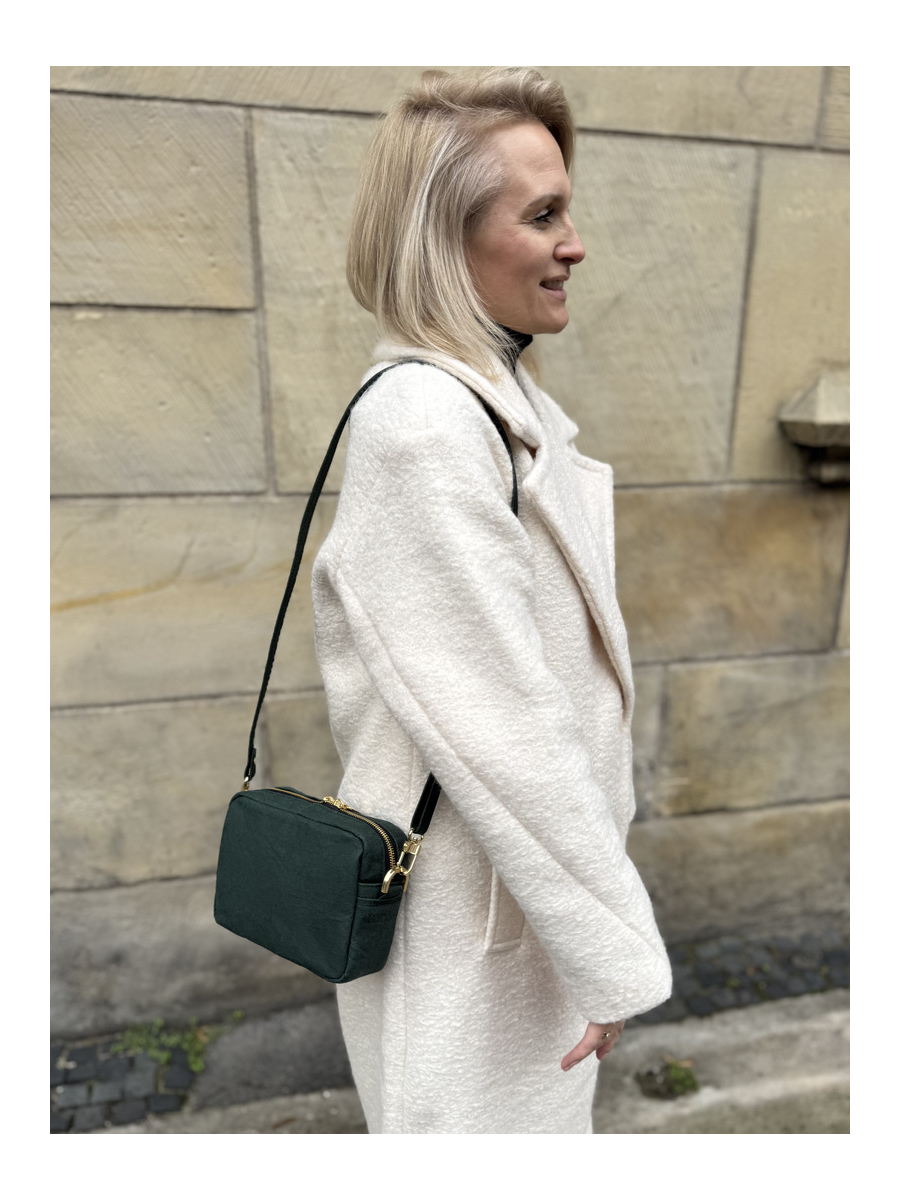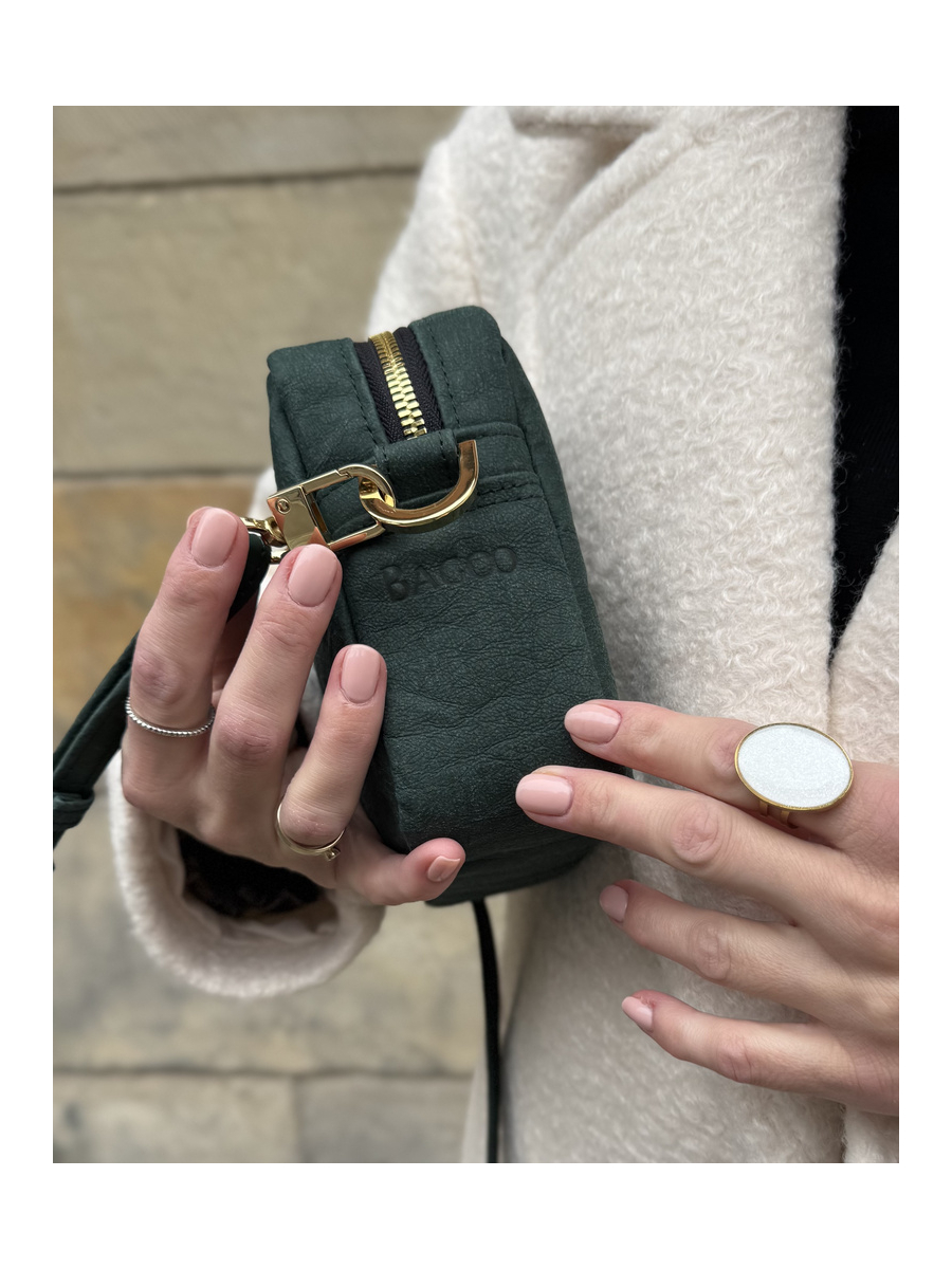 Szyjemy w lokalnej pracowni w Poznaniu, gdzie mistrzyni krawiectwa Magda dba o każdy detal. Dlatego też wysyłka trwa do 10 dni, bo większość produktów jest szyta dopiero po złożeniu zamówienia. Stawiamy na jakość i relacje – między pracownikami, z partnerami oraz z klientami - czyli z Tobą! Tworzymy przede wszystkim dla kobiet, które od torebki oczekują czegoś więcej niż tylko wyglądu i ponad wszystko cenią wygodę. Nasze klientki najbardziej cenią Bagoo za niezwykłą lekkość materiału, genialną organizację wnętrza oraz minimalizm. Korzystamy wyłącznie z innowacyjnej, certyfikowanej skóry roślinnej na bazie celulozy, co daje Ci pewność, że inwestujesz w produkt etyczny, trwały i stworzony, by ułatwiać i umilić Twoja codzienność. Jeżeli to dla Ciebie ważne, wiedz, że Bagoo to produkty cruelty free.