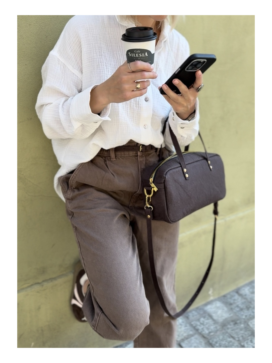 Szyjemy w lokalnej pracowni w Poznaniu, gdzie mistrzyni krawiectwa Magda dba o każdy detal. Dlatego też wysyłka trwa do 10 dni, bo większość produktów jest szyta dopiero po złożeniu zamówienia. Stawiamy na jakość i relacje – między pracownikami, z partnerami oraz z klientami - czyli z Tobą! Tworzymy przede wszystkim dla kobiet, które od torebki oczekują czegoś więcej niż tylko wyglądu i ponad wszystko cenią wygodę. Nasze klientki najbardziej cenią Bagoo za niezwykłą lekkość materiału, genialną organizację wnętrza oraz minimalizm. Korzystamy wyłącznie z innowacyjnej, certyfikowanej skóry roślinnej na bazie celulozy, co daje Ci pewność, że inwestujesz w produkt etyczny, trwały i stworzony, by ułatwiać i umilić Twoja codzienność. Jeżeli to dla Ciebie ważne, wiedz, że Bagoo to produkty cruelty free.