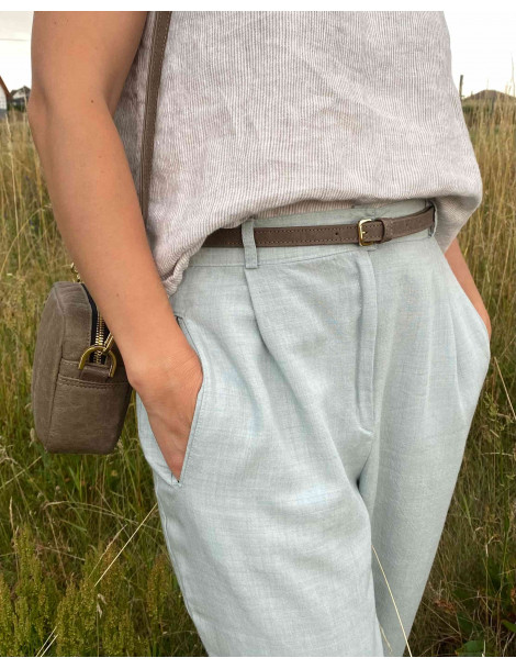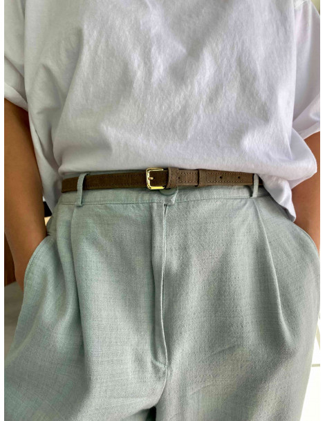 Damski pasek do spodni ze złotą klamrą Klara - taupe - 15mm - rozmiar S