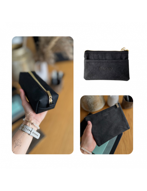 Zestaw 3 akcesoriów - Kosmetyczka + saszetka + portfelik - czarny - złote okucia