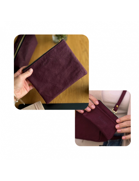 Zestaw 2 akcesoriów - Kosmetyczka + saszetka + portfelik - burgund - złote okucia