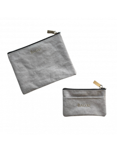 Zestaw 2 akcesoriów - Saszetka + portfelik - szary - srebrne okucia