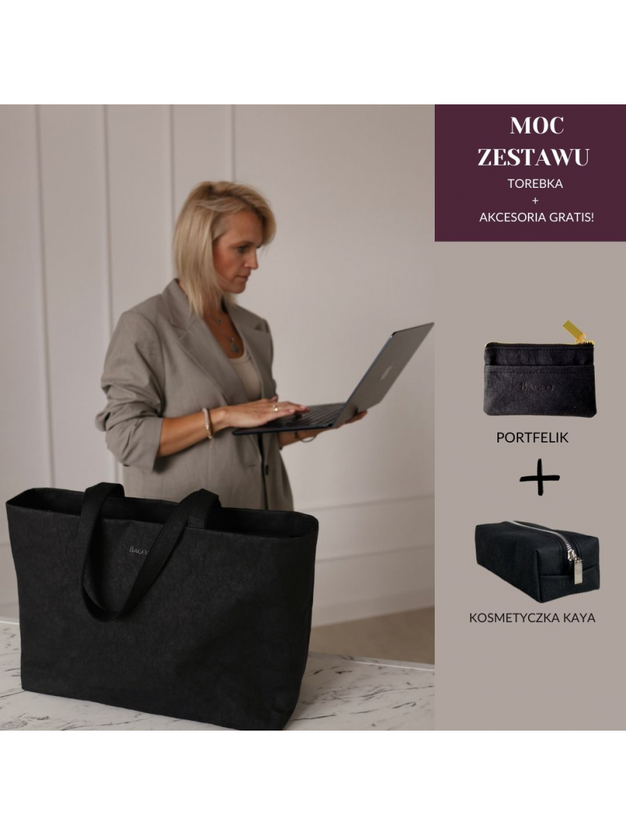 Zestaw 3w1: Shopperka Holly, kosmetyczka i portfelik w cenie torebki - czarny - złote okucia