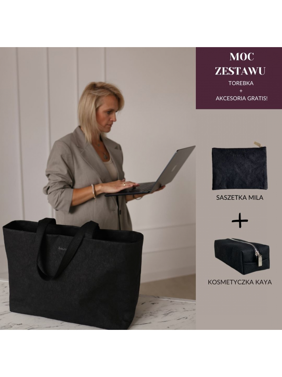 Zestaw 3w1: Shopperka Holly, kosmetyczka i saszetka w cenie torebki - czarny - złote okucia