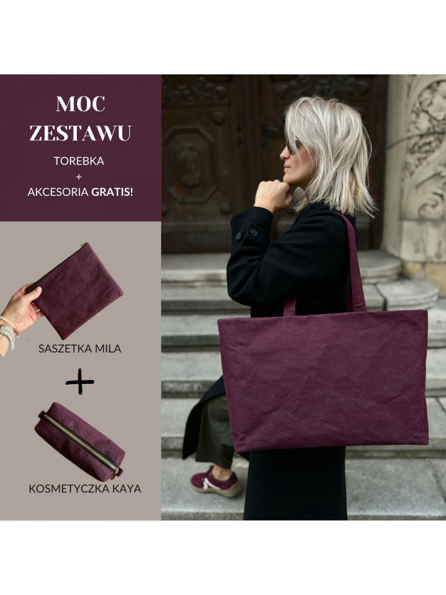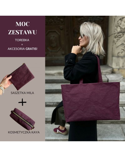 Zestaw 3w1: Shopperka Holly, kosmetyczka i saszetka w cenie torebki- burgund - złote okucia