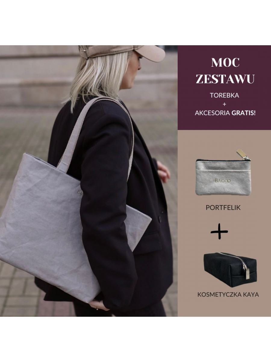 Zestaw 3w1: Shopperka Elly, saszetka i portfelik w cenie torebki - szary - srebrne okucia