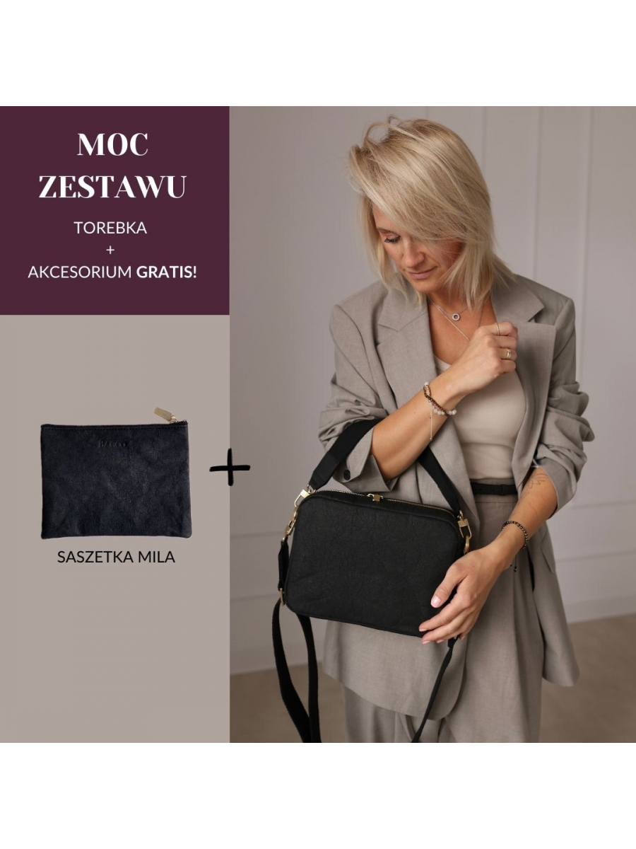 Zestaw 2w1: Listonoszka Melody i saszetka w cenie torebki - czarny - złote okucia