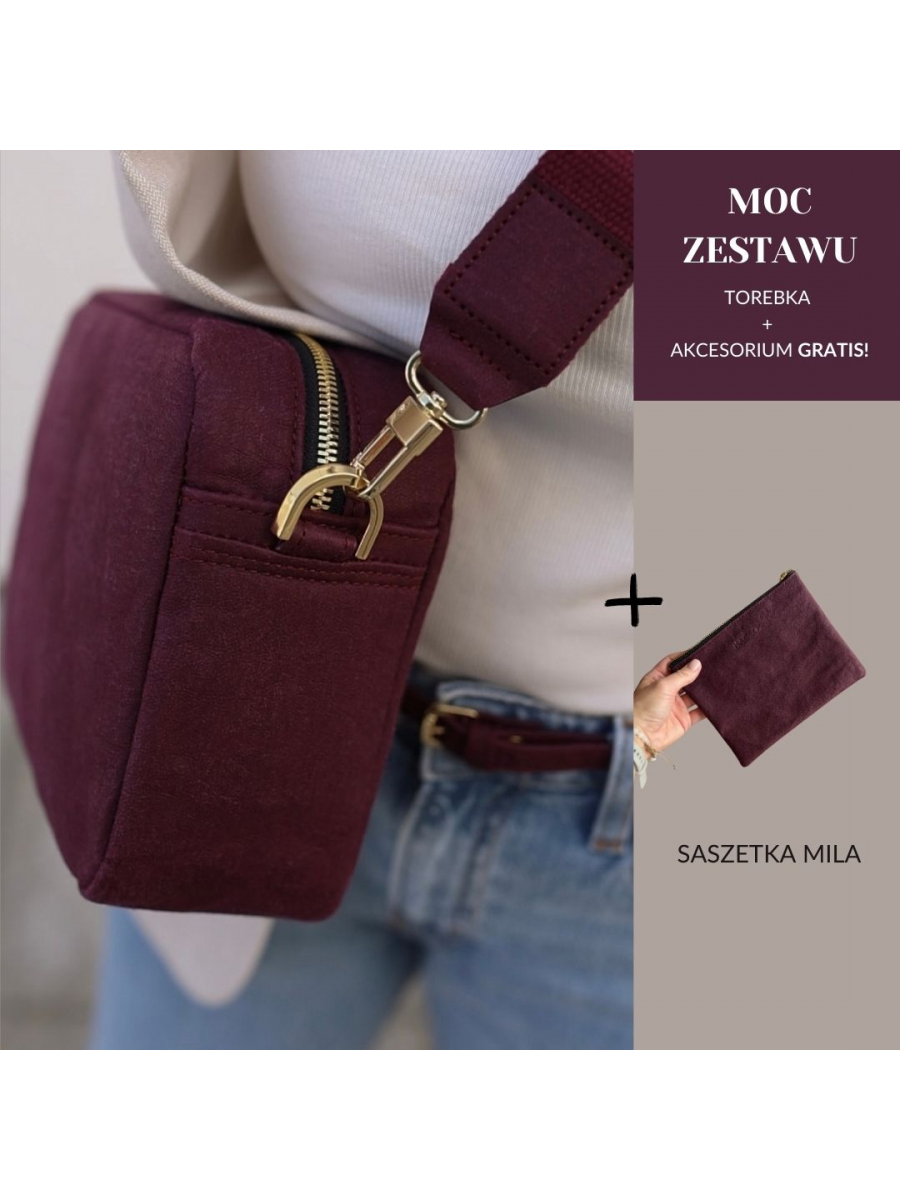 Zestaw 2w1: Listonoszka Melody i saszetka w cenie torebki- burgund - złote okucia