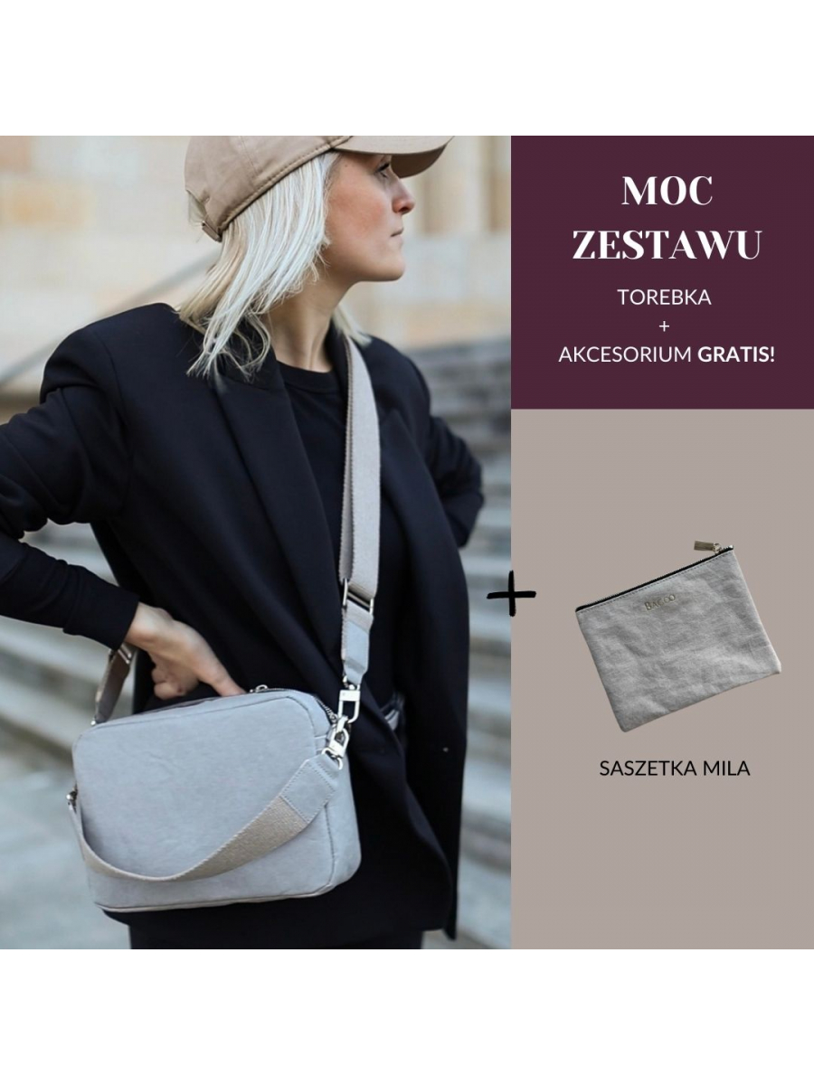Zestaw 2w1: Listonoszka Melody i saszetka w cenie torebki - szary - srebrne okucia