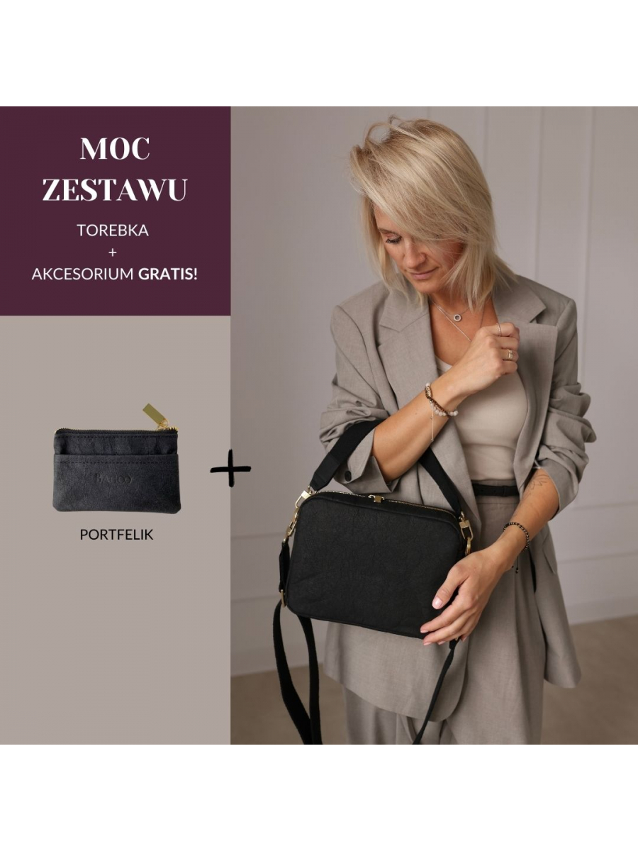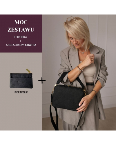 Zestaw 2w1: Listonoszka Melody i portfelik w cenie torebki - czarny - złote okucia
