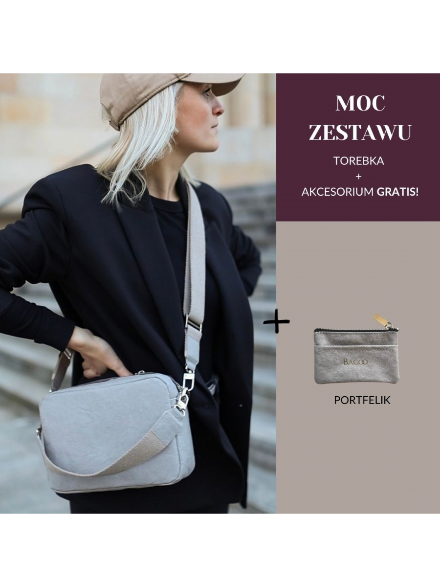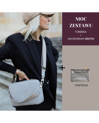 Zestaw 2w1: Listonoszka Melody i portfelik w cenie torebki - szary - srebrne okucia