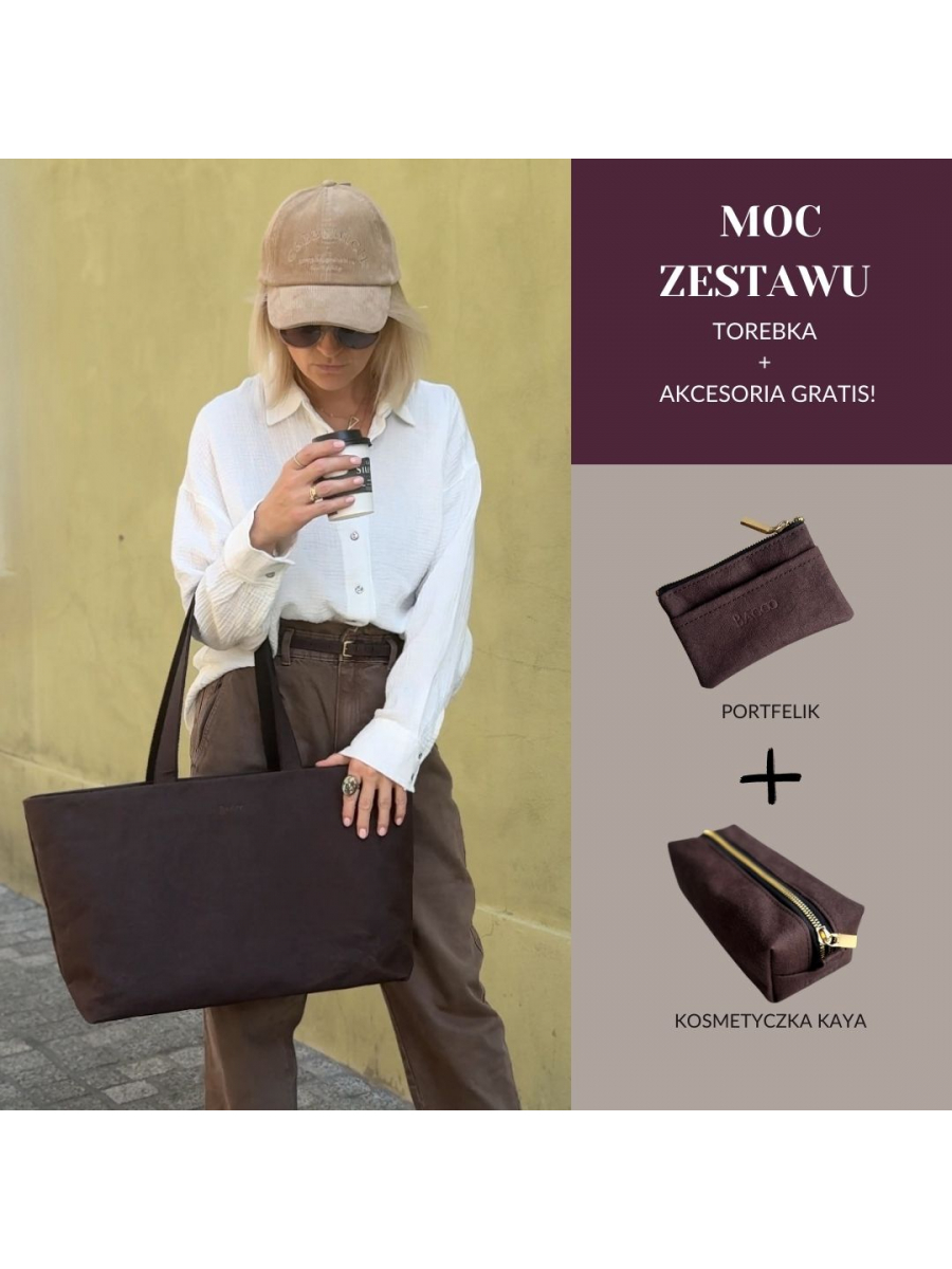 Zestaw 3w1: Shopperka Holly, kosmetyczka i portfelik w cenie torebki - czekoladowy - złote okucia