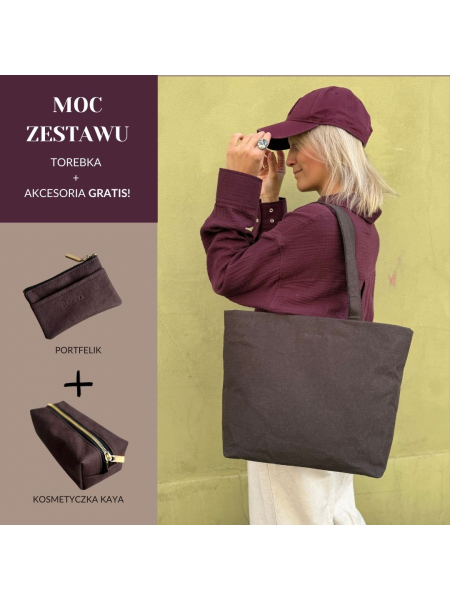 Zestaw 3w1: Shopperka Elly, kosmetyczka i portfelik w cenie torebki - czekoladowy - złote okucia