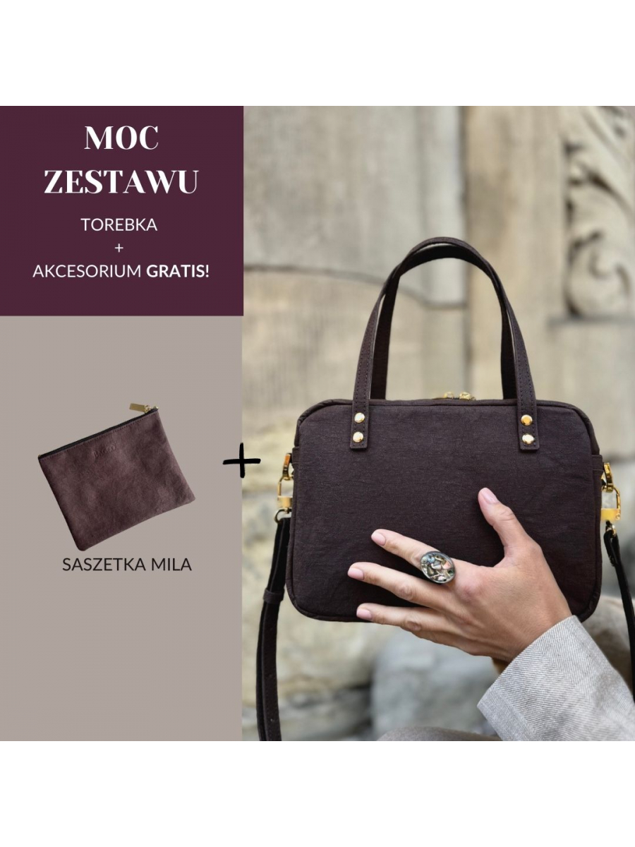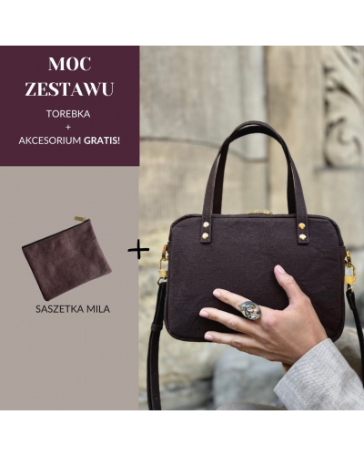 Zestaw 2w1: Torebka Roma i saszetka w cenie torebki - czekoladowy - złote okucia
