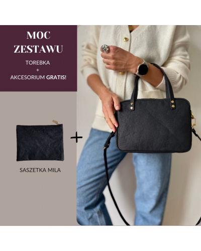 Zestaw 2w1: Torebka Roma i saszetka w cenie torebki - czarny - złote okucia